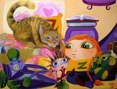 ![]() "Zee and the Cat" 18" x 24"; acrylic on canvas; unframed - $600 |