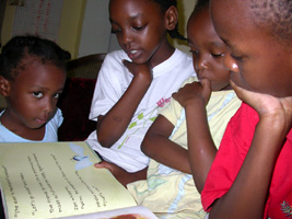 magical book with some of the kids in our Dar es Salaam neighborhood. They love Zee!